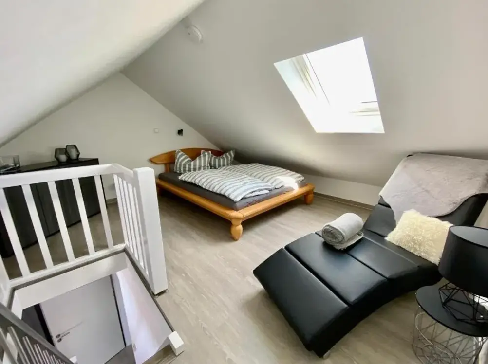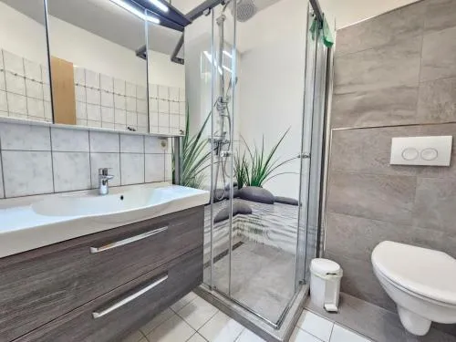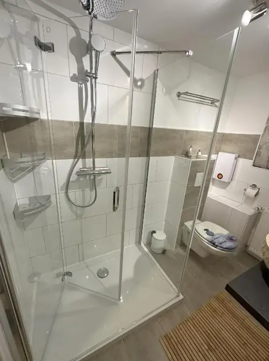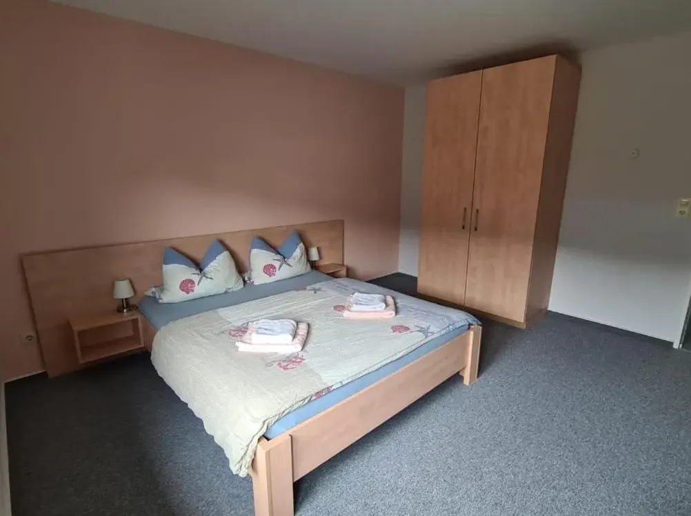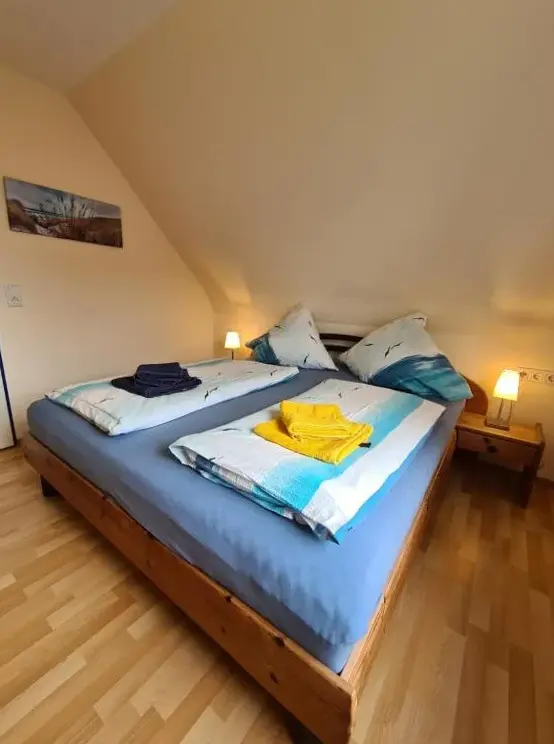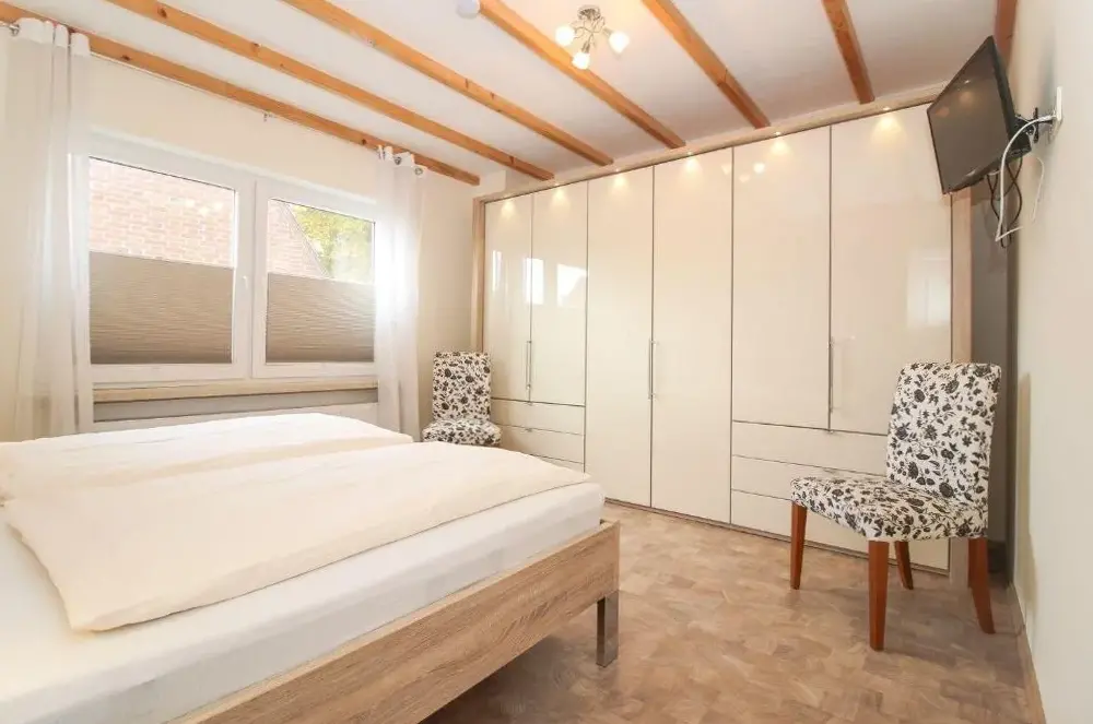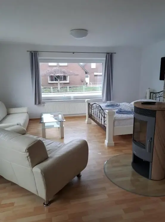 More information about Ferienwohnung Nordland2 für max. 5 Personen in NorddeichGästehaus Norddeich in Norden offers a holiday home with a garden and free WiFi, featuring a terrace and balcony for relaxation. The property provides a private bathroom, sofa bed, seating area, TV, wardrobe, and a work desk. Free on-site private parking and proximity to Norddeich Beach (16-minute walk) and Norddeich Train Station (1969 feet) enhance convenience.