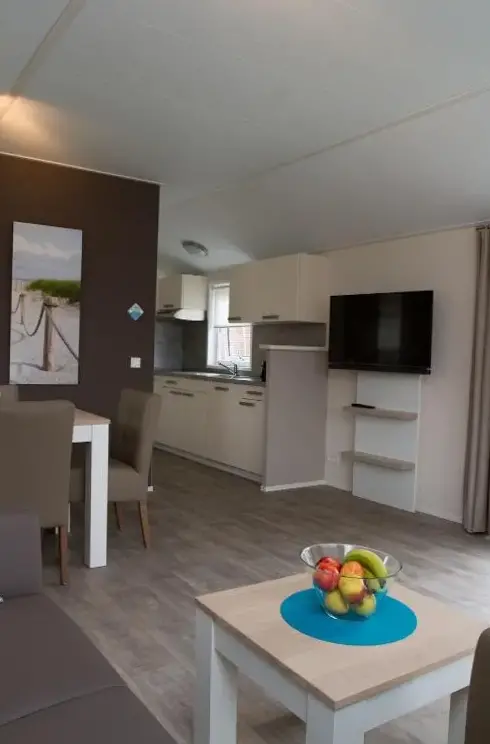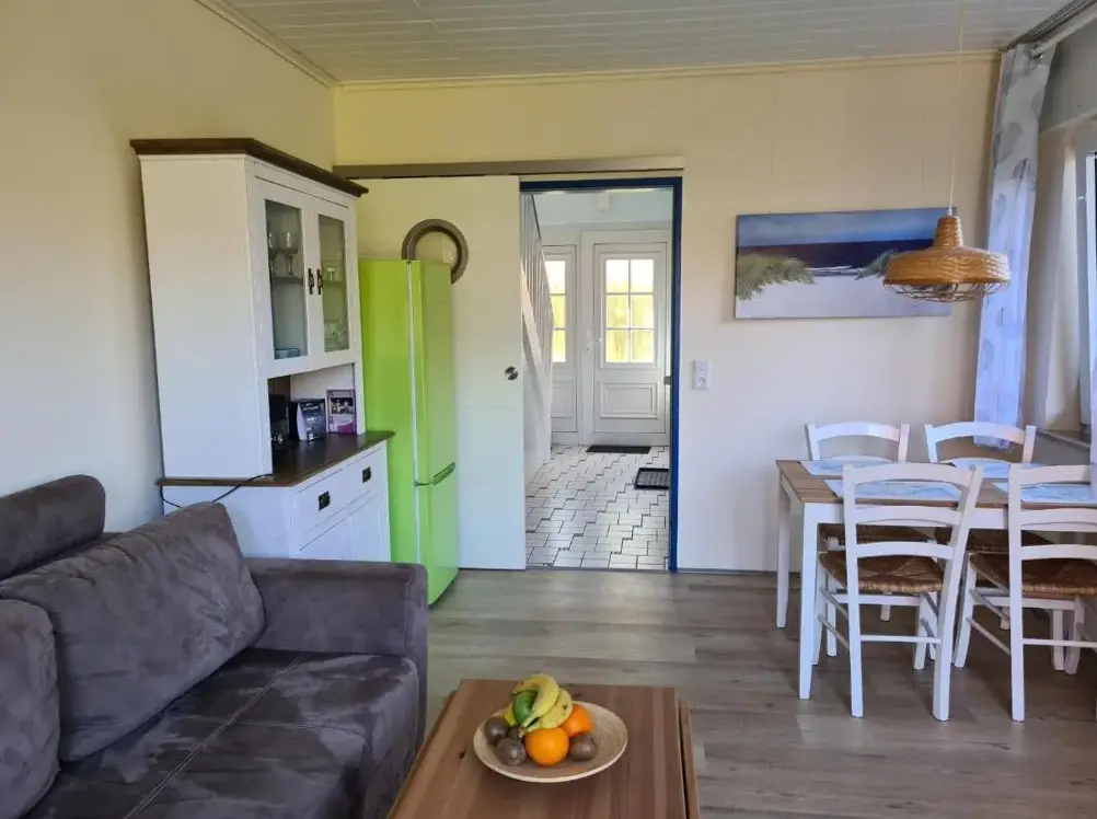 More information about Chalet bis sechs Personen ohne HundSmaragdgrün in Norden offers a one-bedroom apartment with a terrace, kitchenette, and garden views, featuring a living room with a TV, free WiFi, a fully equipped kitchen, and a comfortable bedroom. The terrace provides outdoor relaxation, and the property offers free on-site private parking. Located a 5-minute walk from Norddeich Beach and 1.