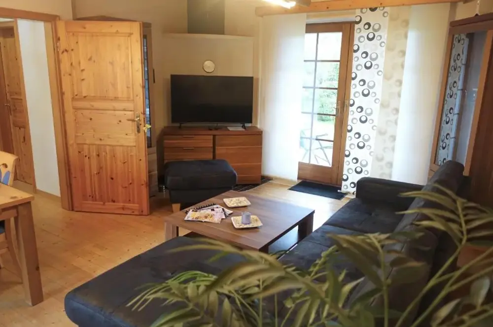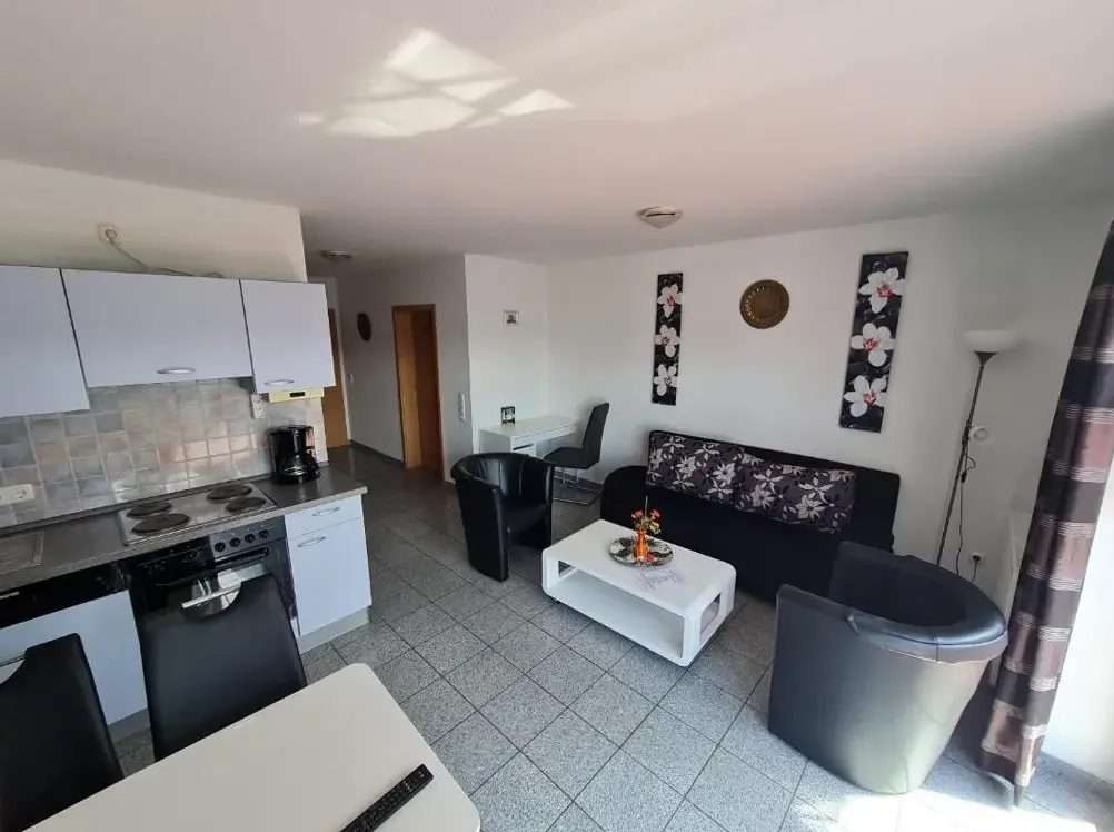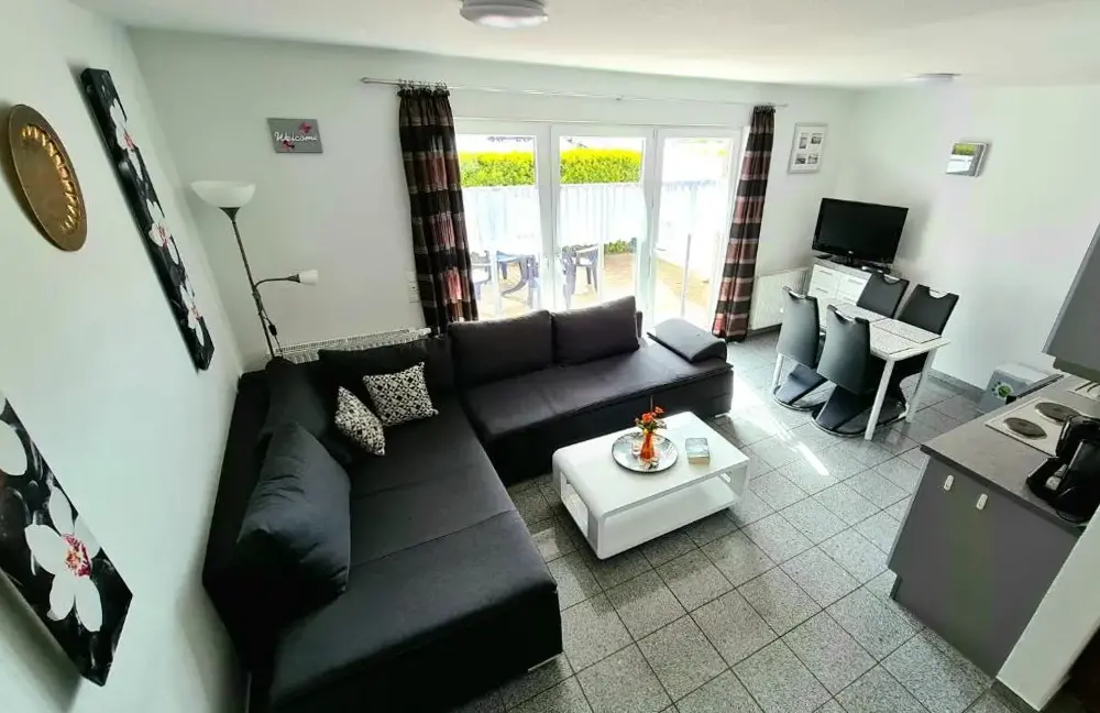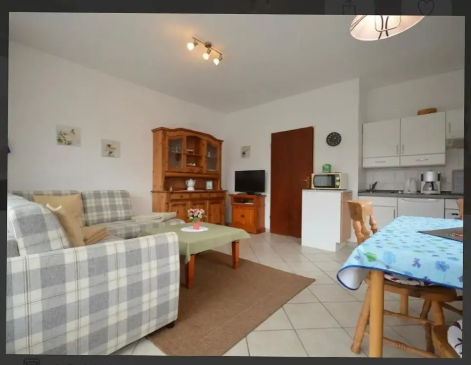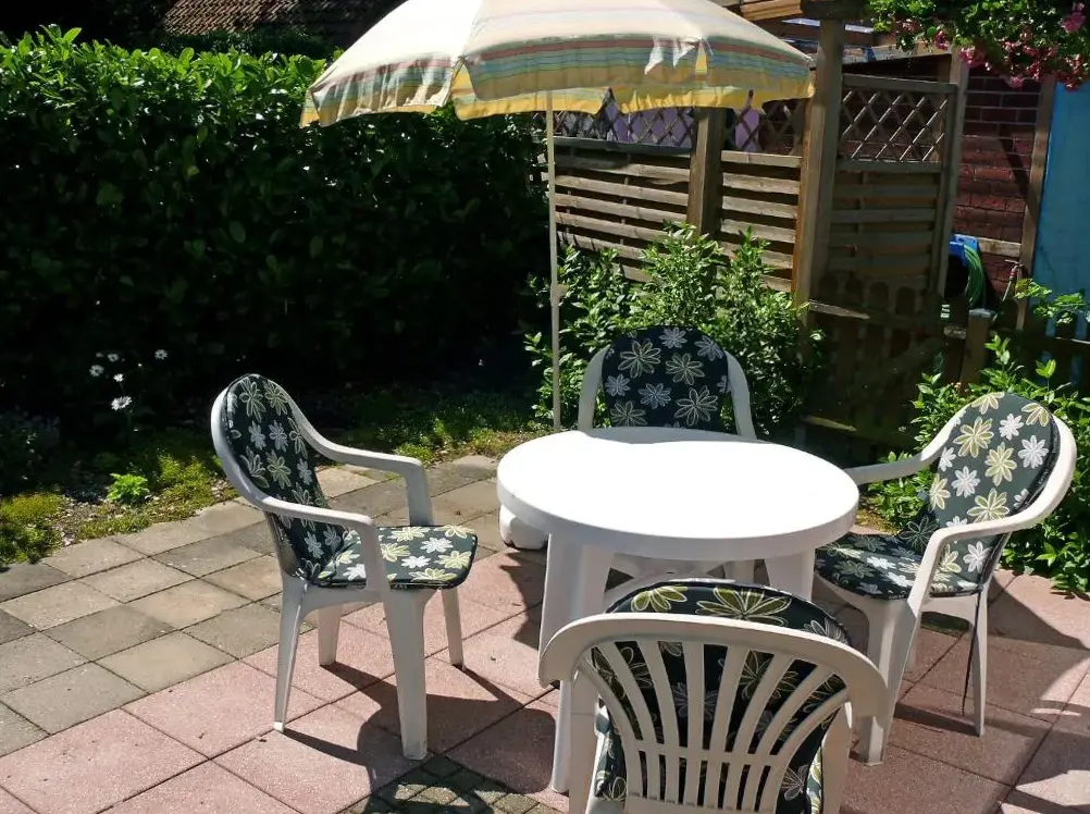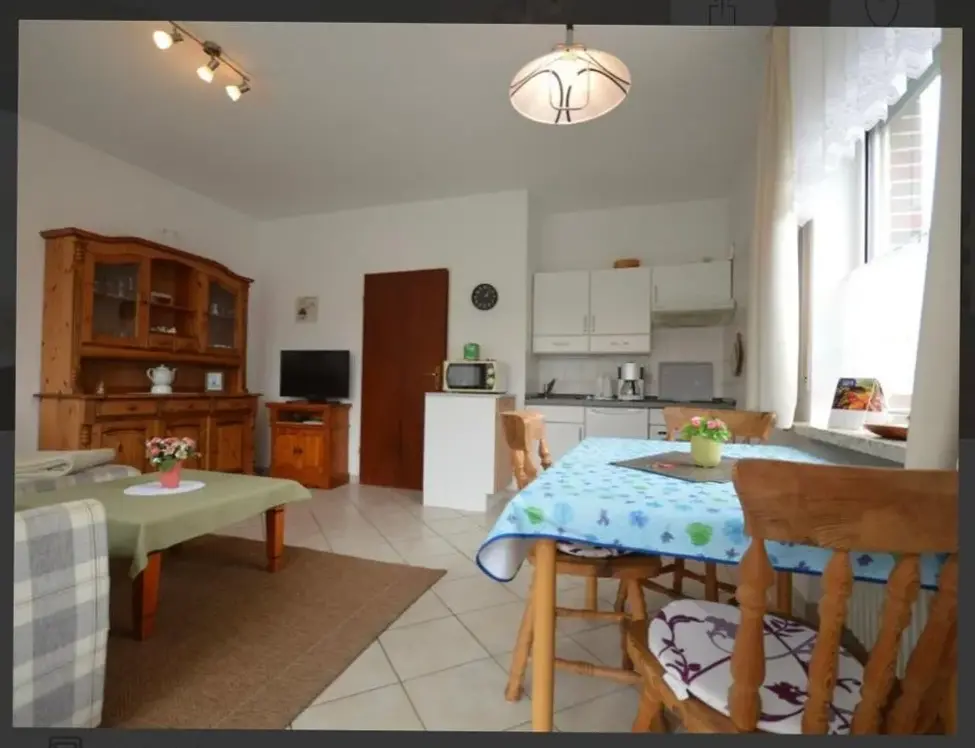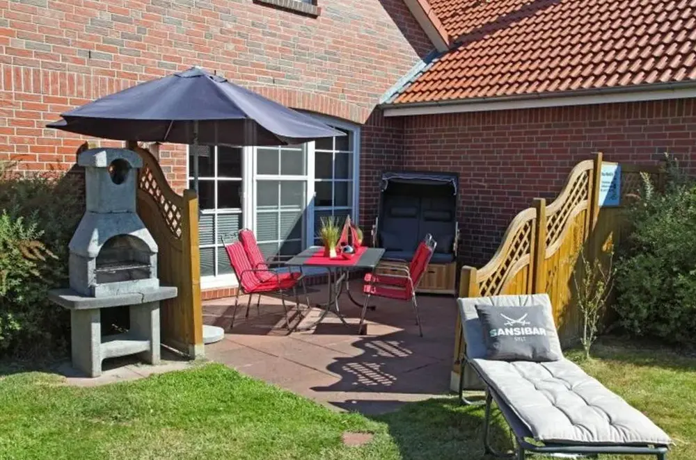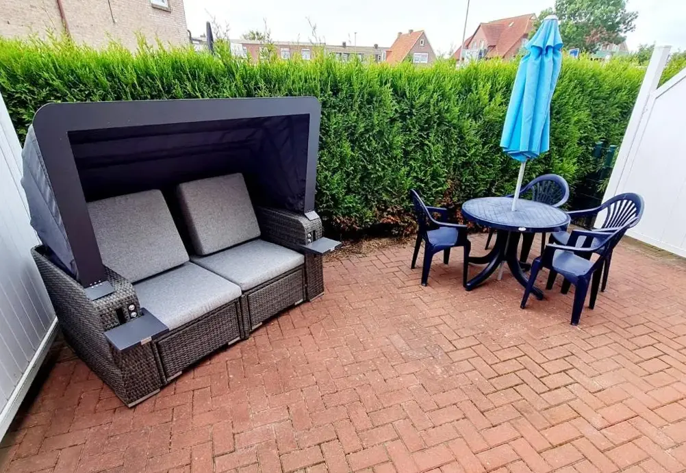 More information about Gästehaus NorddeichFerienwohnungen Saida Wohnung 5 offers a one-bedroom apartment with a living room and a terrace in Norden, providing free WiFi. Modern amenities include a washing machine, kitchen, patio, dining table, sofa, TV, private entrance, outdoor furniture, and a barbecue.