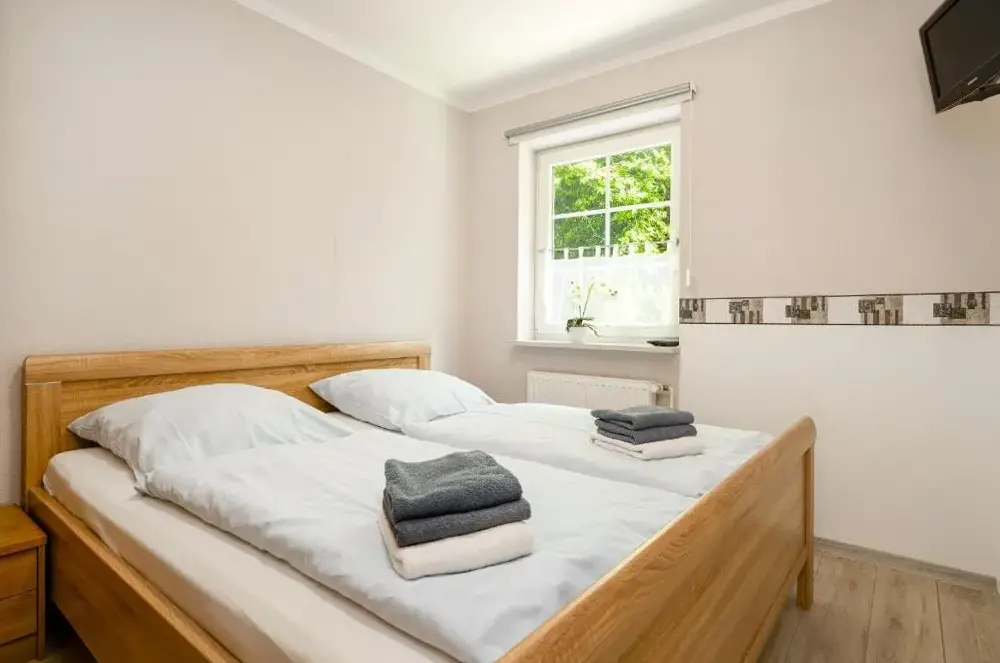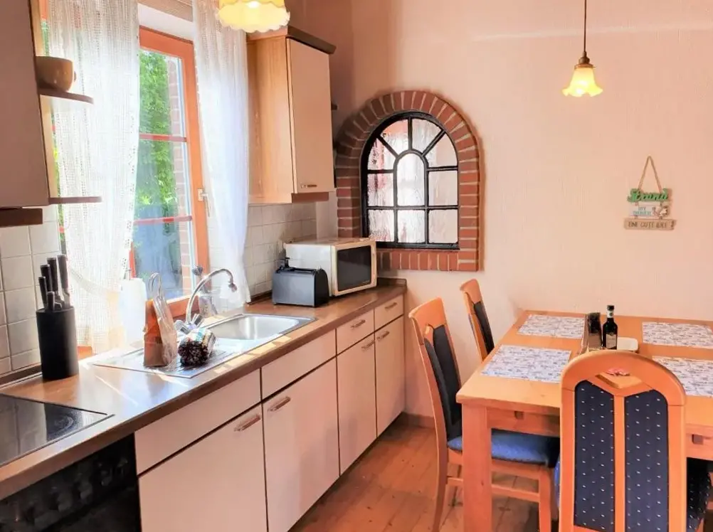 More information about Hotel & Restaurant MöwchenFerienhaus-Kranich offers a spacious holiday home in Norden, Germany, with two bedrooms and a private bathroom, a garden and terrace with outdoor seating, and free WiFi throughout. The fully equipped kitchenette, washing machine, cozy fireplace, barbecue, tea and coffee maker, and TV provide convenient amenities. Nearby attractions and easy access to Norddeich Train Station (about 3.6–3.