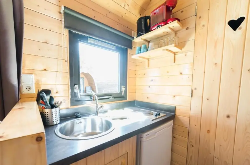 More information about SmaragdgrünChalet bis 5 Personen ohne Hund in Norden offers a holiday home with two bedrooms, a terrace, restaurant, and free WiFi, delivering a comfortable stay. The kitchenette includes a coffee machine, refrigerator, and dishwasher, with outdoor furniture on the terrace for a relaxing space. Located 1.2 mi from Norddeich Beach and 3.
