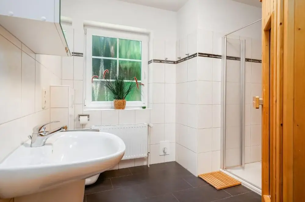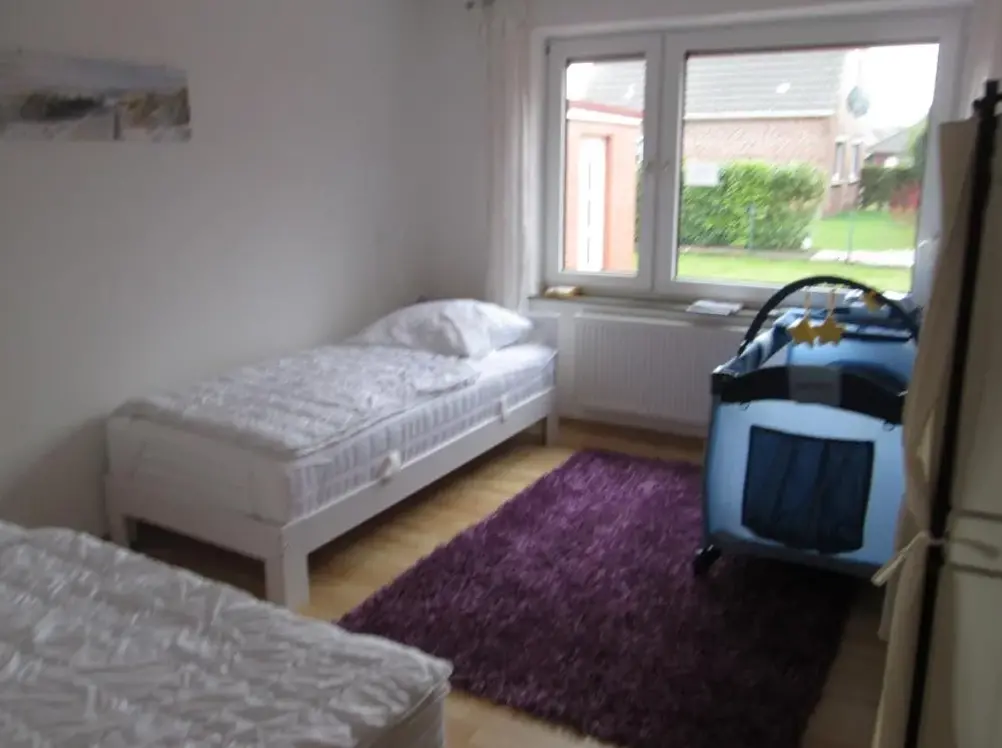 More information about Ferienwohnung/Norden/4PersonenFerienhaus am Kurpark-Norddeich strandnah offers comfortable accommodations with two bedrooms and two bathrooms, a fully equipped kitchen, terrace, and garden. Free WiFi and free on-site private parking are available. Outdoor seating and a terrace provide a peaceful setting, while the garden invites outdoor activities. Bicycle parking and bike hire are available for exploring the surroundings.