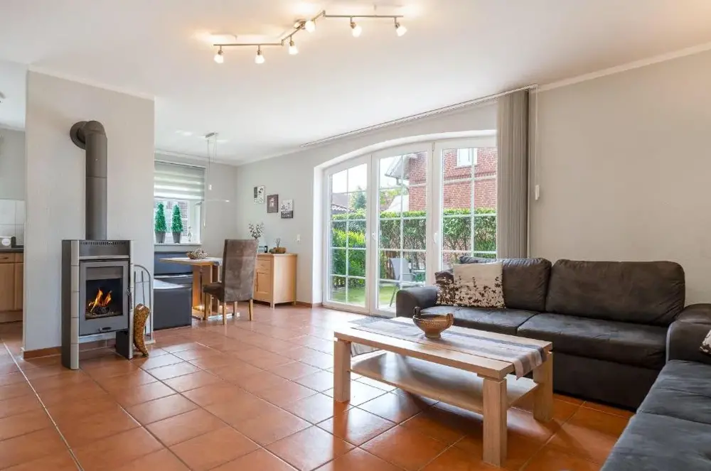 More information about FriesennestHaus Otter in Norden offers comfortable accommodations with three bedrooms and two bathrooms, a fully equipped kitchen, and a cozy living room with a fireplace. Guests can enjoy relaxing facilities including a sauna, terrace, and garden, plus an outdoor seating area.