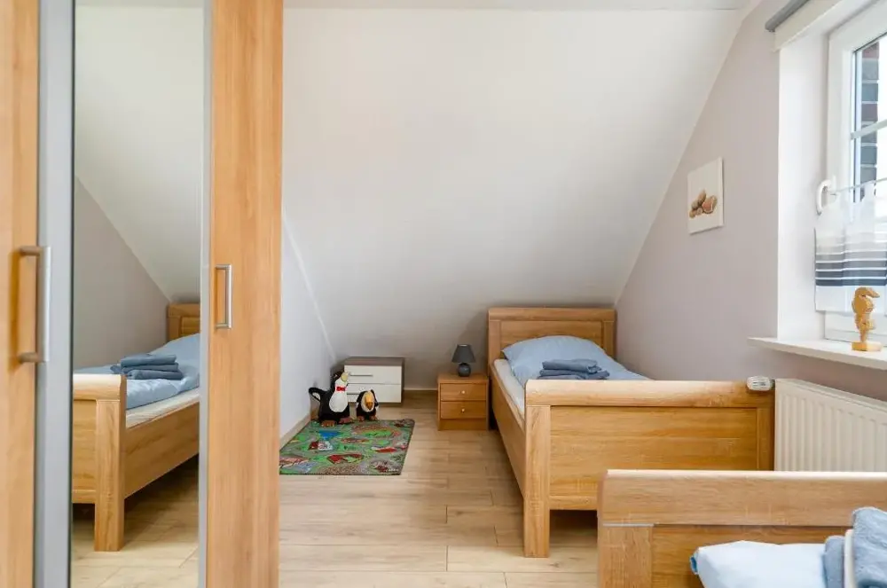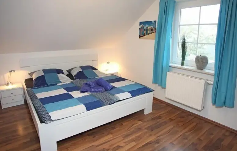 More information about Haus Dreimaster ErdgeschoßFerienwohnung Nordland2 für max. 5 Personen in Norddeich offers a spacious two-bedroom apartment with shared kitchen, terrace, free WiFi, and lounge area, located 1.2 km from Norddeich Train Station and a 12-minute walk to Norddeich Beach.