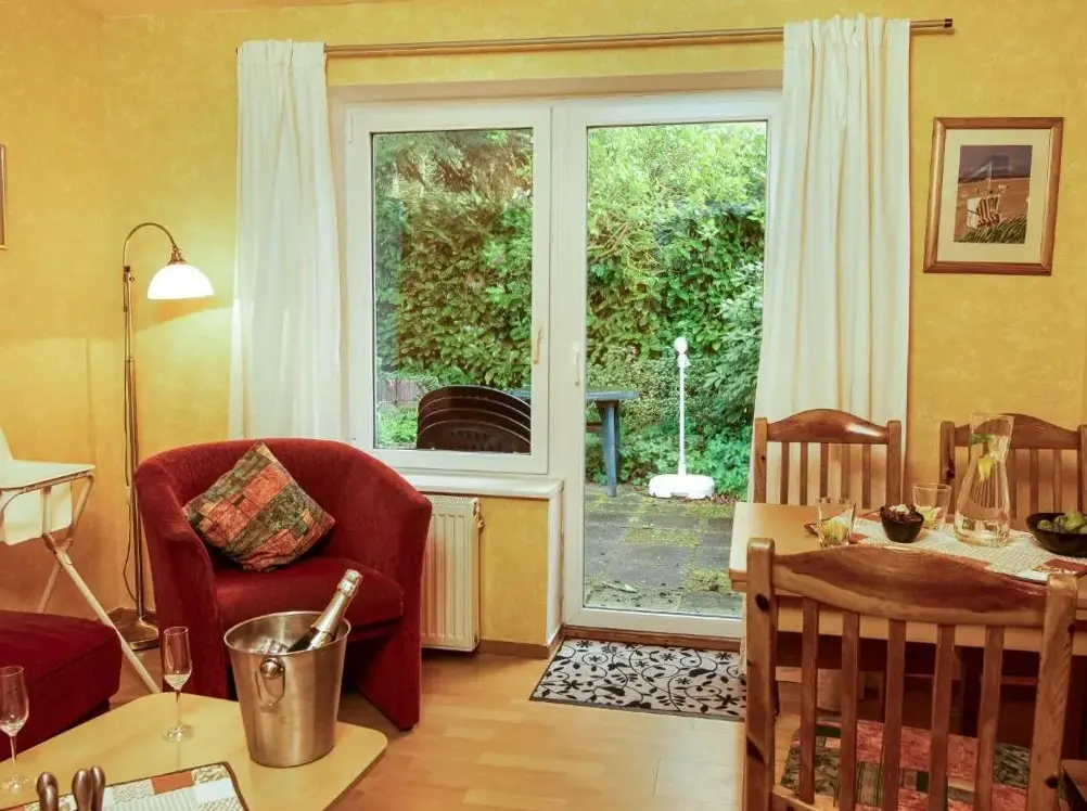 More information about Ferienhaus am Kurpark-Norddeich strandnahHaus Dreimaster Erdgeschoß offers a spacious ground-floor apartment in Norden with a private entrance and inner courtyard views, featuring a garden and terrace with outdoor seating. Guests enjoy a kitchenette with a coffee machine, dishwasher, and microwave, along with a fireplace, TV, and parquet floors, plus free WiFi and free parking. Located near Norddeich Train Station (3.