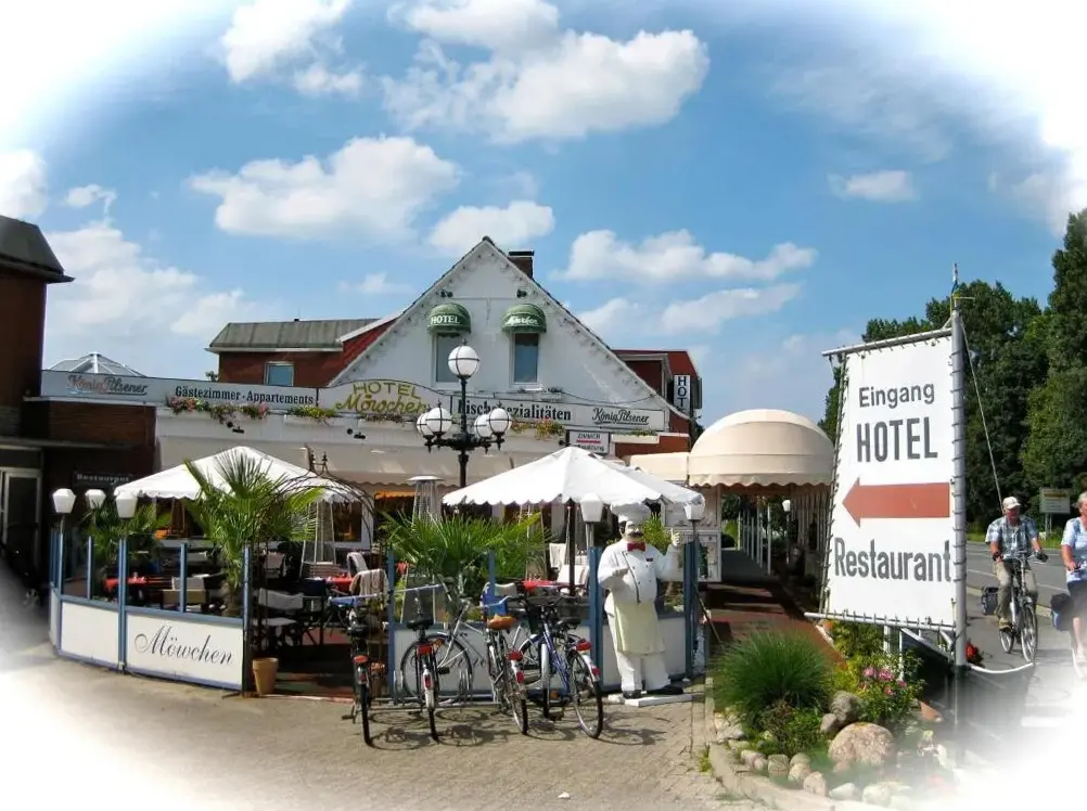 More information about Chalet bis 5 Personen ohne HundHotel & Restaurant Möwchen in Norden offers comfortable accommodations with family rooms, private bathrooms, work desks, TV, wardrobe, and free WiFi. Guests can enjoy a sun terrace, restaurant, and bar, with menus for special diets. The property provides bike hire, luggage storage, and free on-site parking.