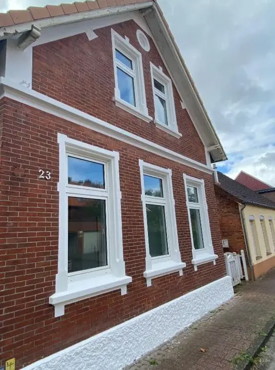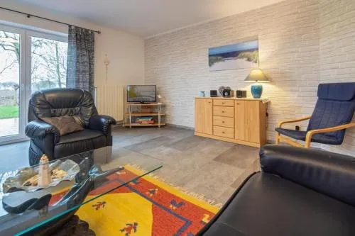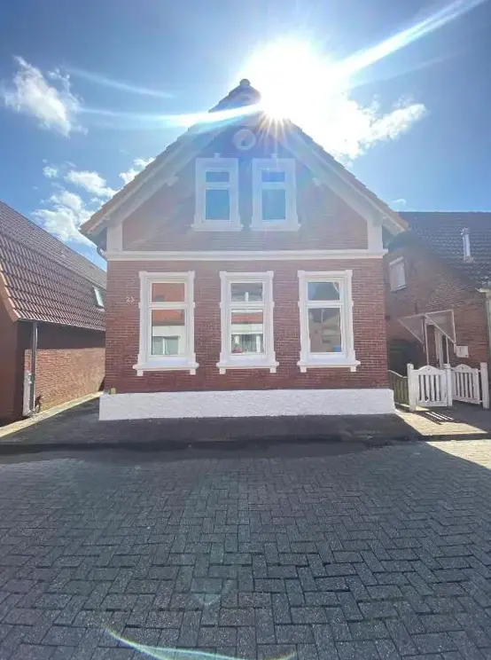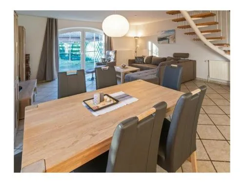 More information about Ferienhaus-EbbeClaudia Comfortable holiday residence in Norden offers three bedrooms and a fully equipped kitchen with modern appliances, a cozy fireplace, and a washing machine. Guests can enjoy garden and terrace views with outdoor furniture suitable for alfresco dining, plus amenities like free WiFi, a TV, and a dishwasher. Nearby attractions and easy access to Norddeich Train Station (2.