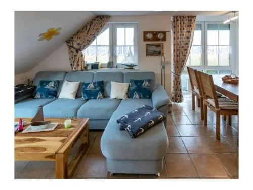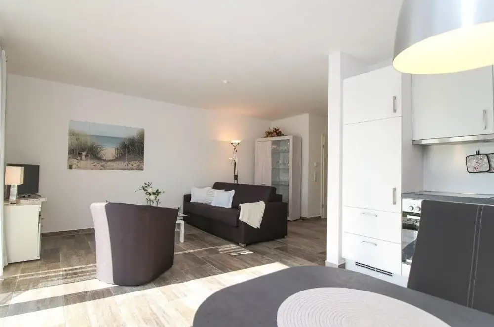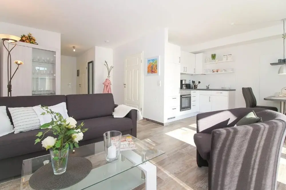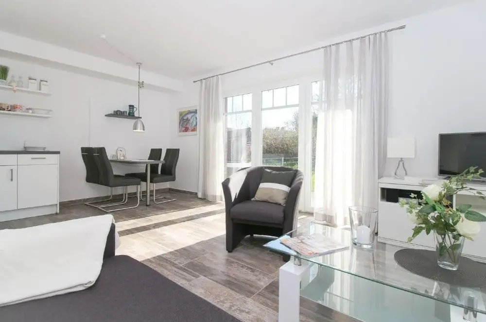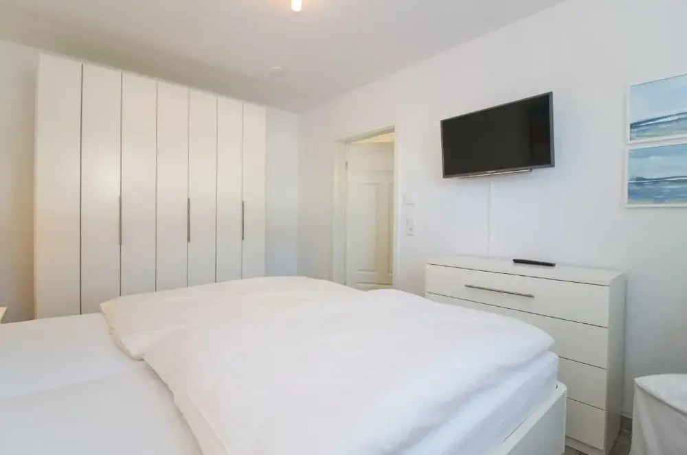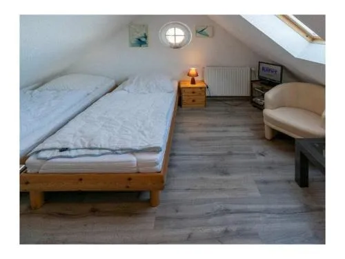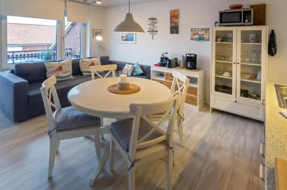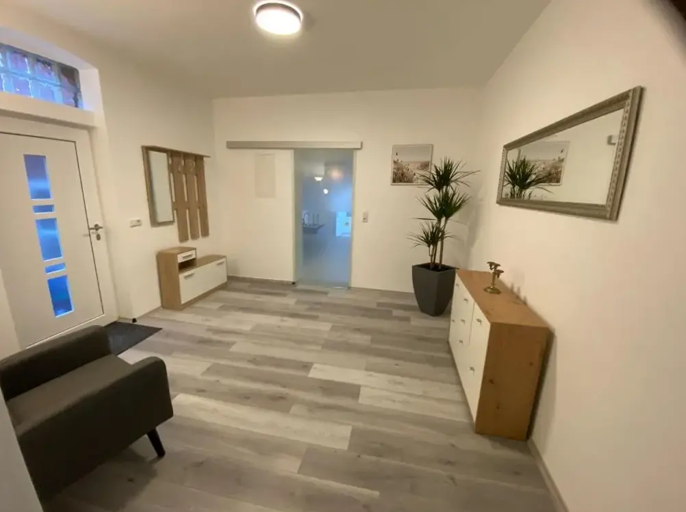 More information about Claudia Comfortable holiday residenceHaus Schönborn Norden Family offers a spacious apartment in Norden with two bedrooms and a living room, featuring parquet floors and a private entrance for a comfortable stay. Enjoy modern amenities including a fully equipped kitchenette with a coffee machine, microwave, dishwasher, and oven, plus a washing machine.