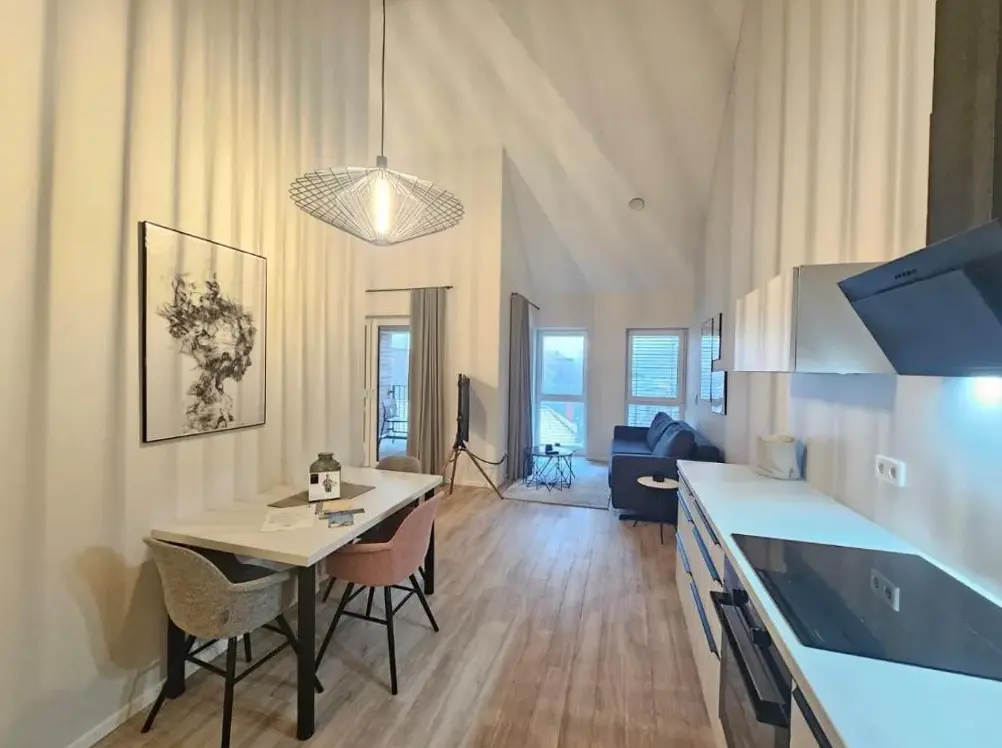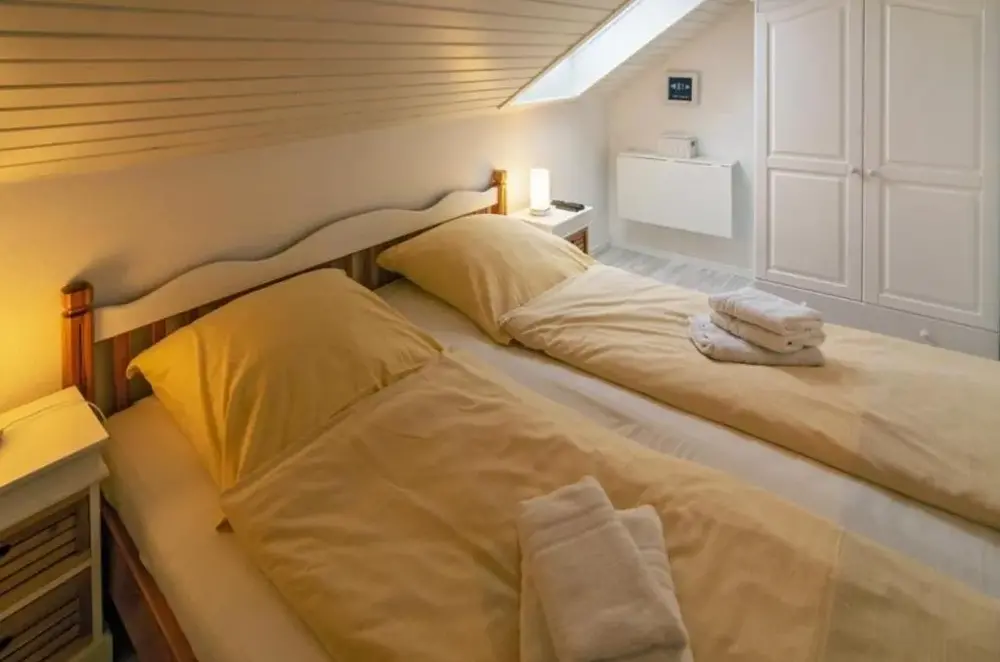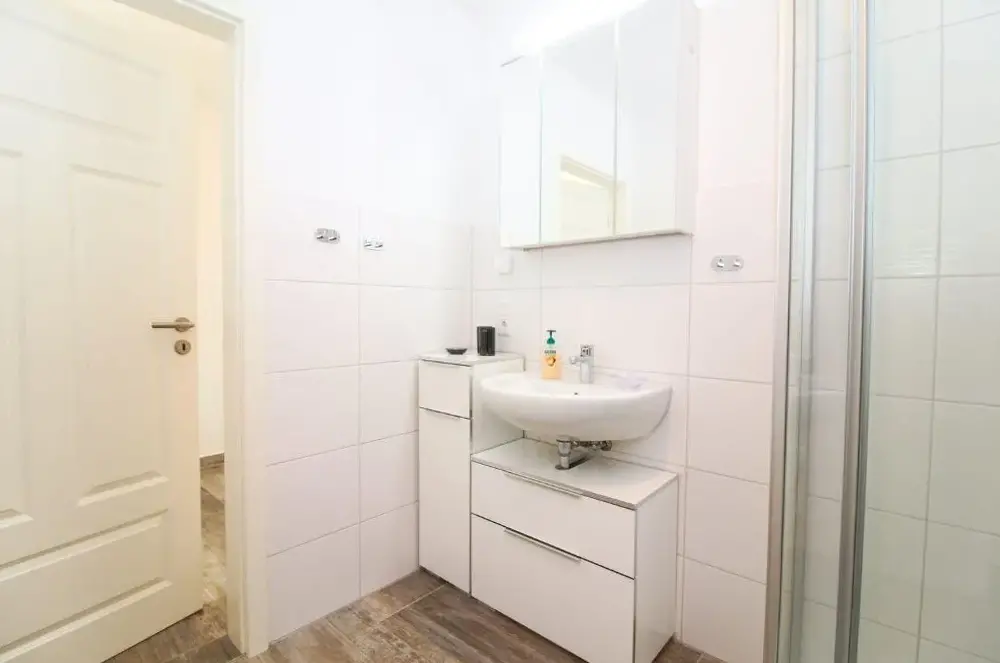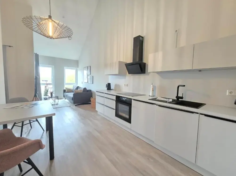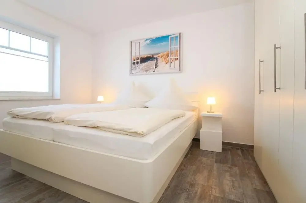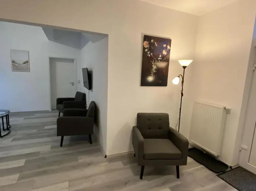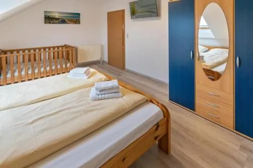 More information about Claudia Comfortable holiday residenceHaus Schönborn Norden Family offers a spacious apartment in Norden with two bedrooms and a living room, featuring parquet floors and a private entrance for a comfortable stay. Enjoy modern amenities including a fully equipped kitchenette with a coffee machine, microwave, dishwasher, and oven, plus a washing machine.