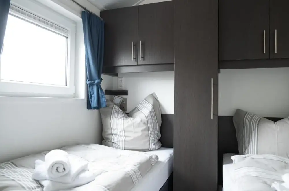 More information about Chalet bis 4 Personen ohne HundDeichmöwe Comfortable holiday residence offers accommodations in Norden, 1.8 miles from Norddeich Beach and 3.1 miles from Norddeich Train Station. Guests staying at this boat have access to a terrace. Outdoor seating is also available at the boat. With free Wifi, this 2-bedroom boat features a cable TV and a kitchen with a microwave and toaster.