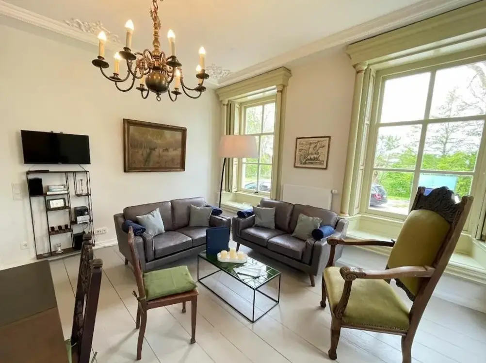 More information about Mooi Stuv Comfortable holiday residenceWaterkant Comfortable holiday residence in Norden offers five bedrooms and three bathrooms, with a living room featuring a sofa and TV for a relaxing stay. Guests can enjoy a garden and terrace with garden views, and the terrace is equipped with outdoor furniture for alfresco dining.
