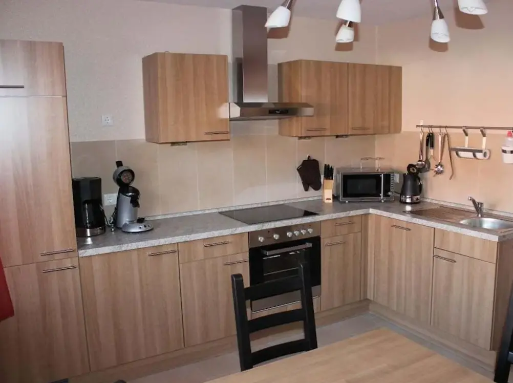 More information about Chalet bis 4 Personen ohne HundSchwemm Comfortable holiday residence in Norden offers four bedrooms and two bathrooms, a spacious garden and terrace, and free WiFi throughout. The shared kitchen is equipped with a full range of appliances including refrigerator, microwave, dishwasher, oven, stovetop, toaster, electric kettle, and tea and coffee maker.