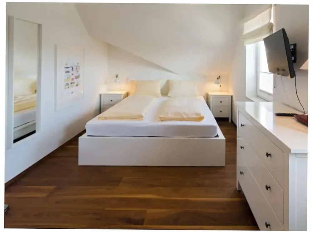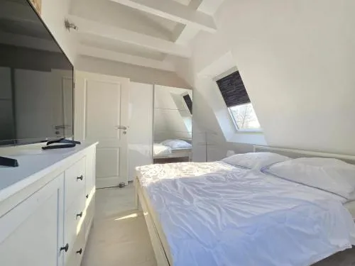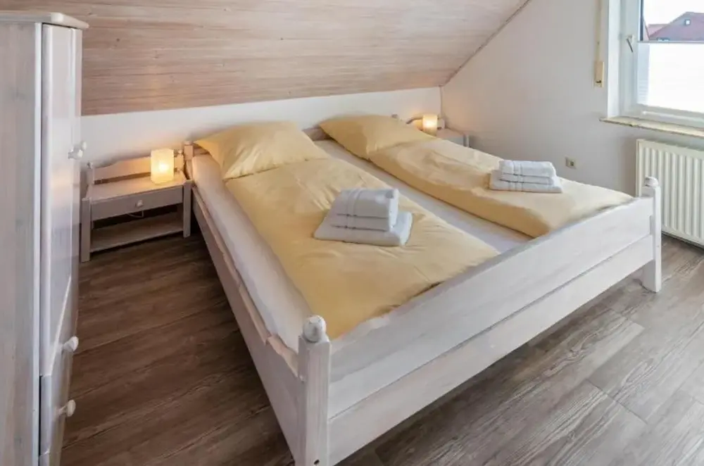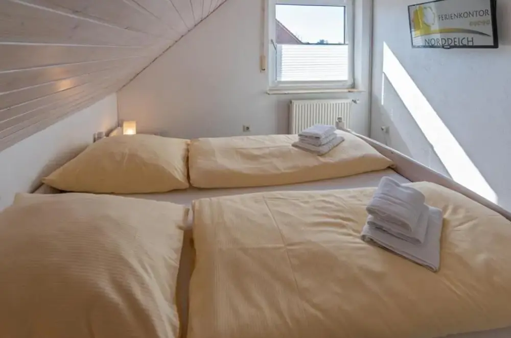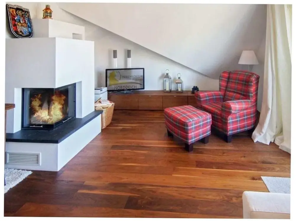 More information about Chalet bis sechs Personen ohne HundHoliday Apartment Norddeich Loft offers a cozy one-bedroom living space in Norden with a balcony, a fully equipped kitchen, washing machine, fireplace, free WiFi, TV, and dishwasher. Located less than 0.6 miles from Norddeich Beach and a 7-minute walk to Norddeich Train Station, it provides convenient access to nearby attractions such as Otto Huus and Amrumbank lightship.