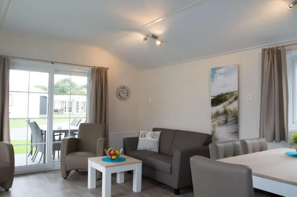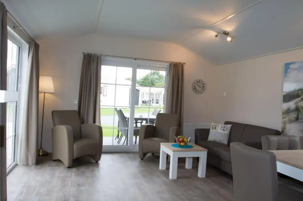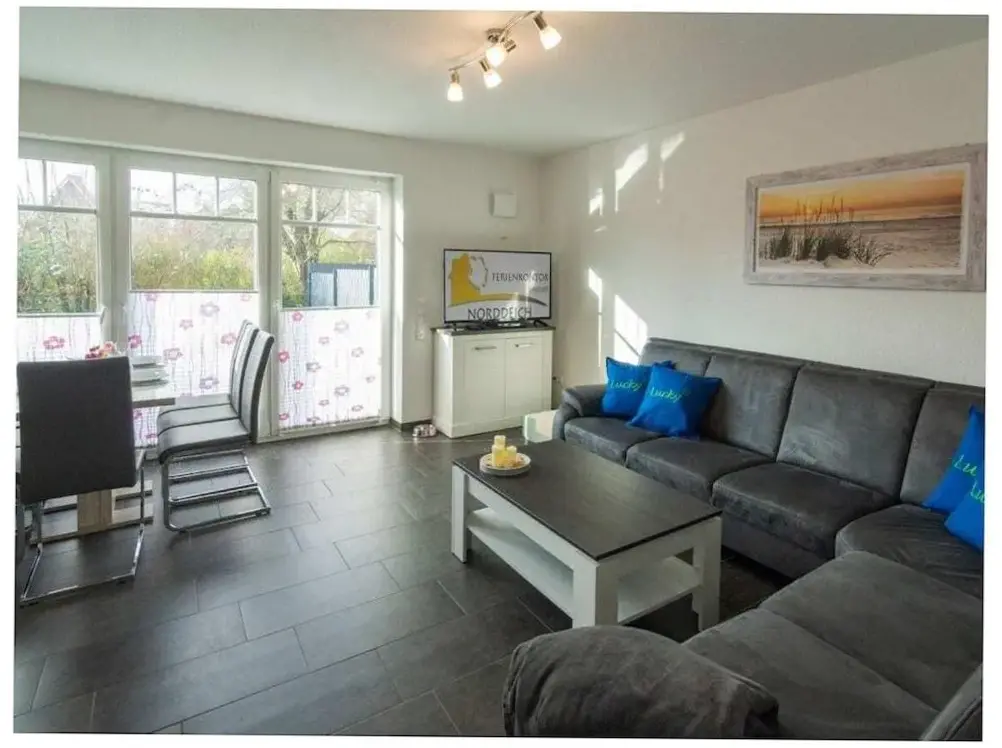 More information about Chalet bis 5 Personen ohne HundLucky Comfortable holiday residence in Norden offers three bedrooms and a spacious living room with a sofa and TV, a garden and terrace with garden views, and outdoor furniture for relaxing. Modern facilities include free WiFi, a fully equipped kitchen, washing machine, fireplace, and tea and coffee maker.