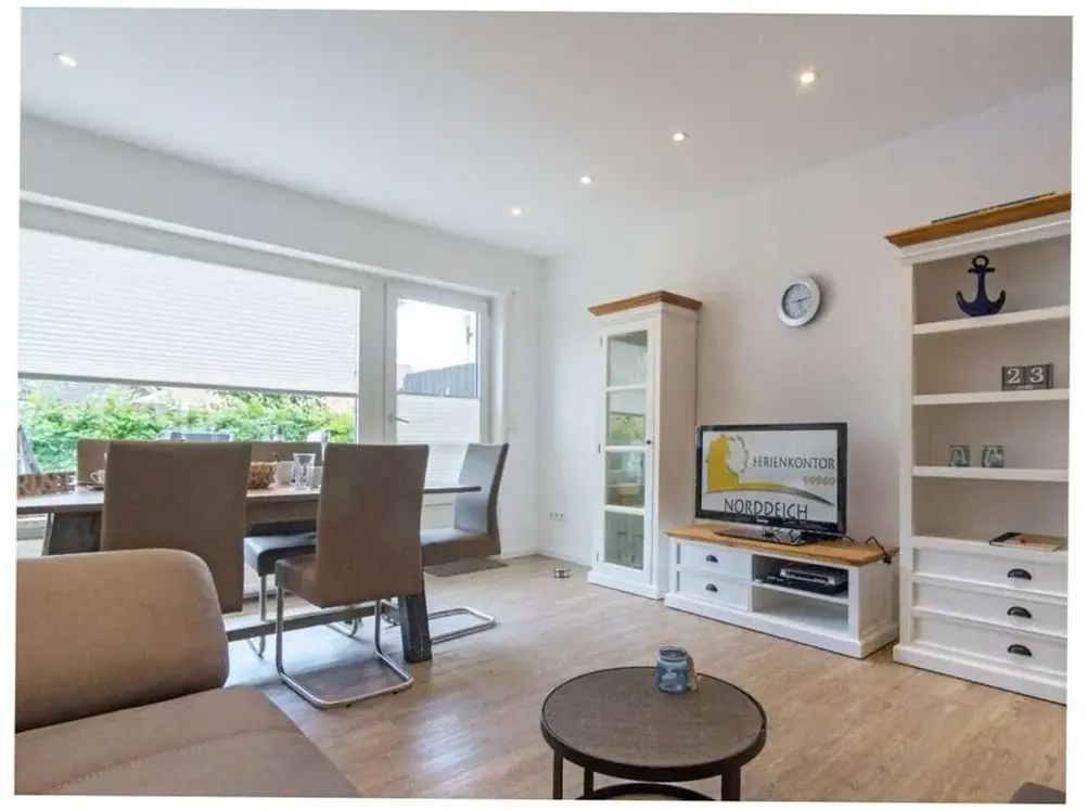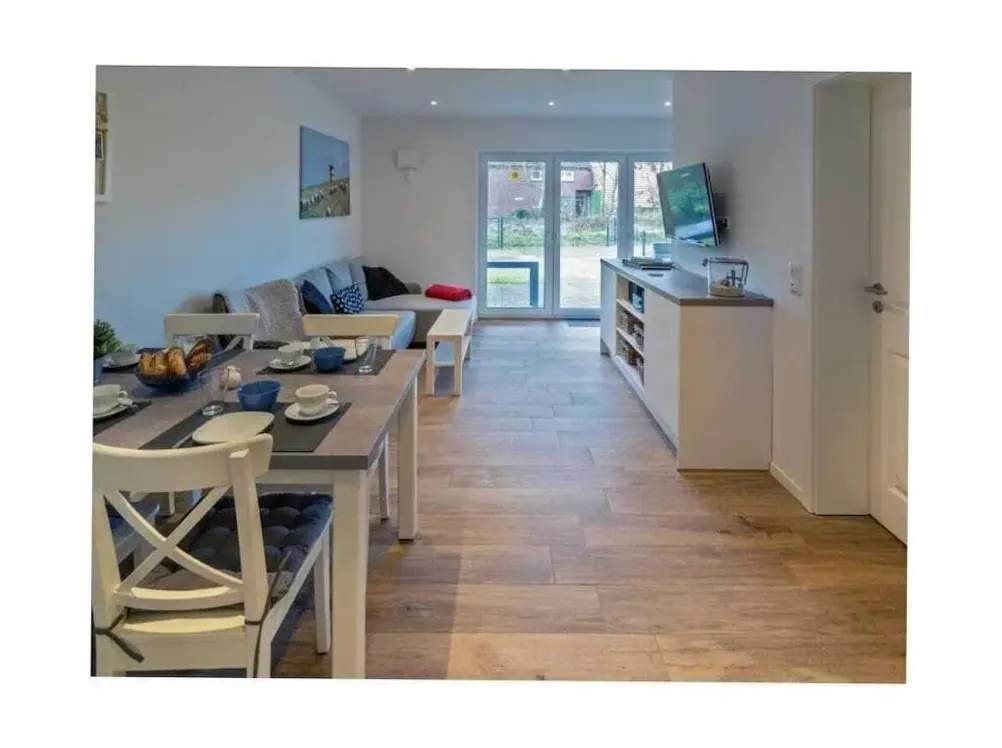 More information about Holiday apartment NorddeichAchterköken Comfortable holiday residence in Norden offers two bedrooms and a cozy living space with a fully equipped kitchen and a garden view dining area. The holiday home includes free WiFi, a TV, and a dishwasher, plus a washing machine, refrigerator, microwave, electric kettle, stovetop, and a fireplace for a comfortable stay.