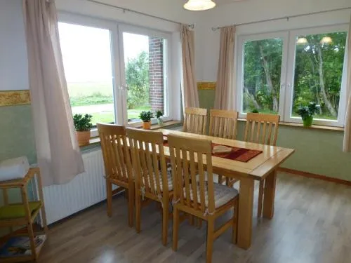 More information about Ferienhaus Herkommer NorddeichChalet bis sechs Personen ohne Hund in Norden offers three bedrooms, a terrace, and a fully equipped kitchen with coffee machine, refrigerator, microwave, dishwasher, oven, stovetop, toaster, and electric kettle. Modern amenities include free WiFi, a restaurant, and free on-site private parking.