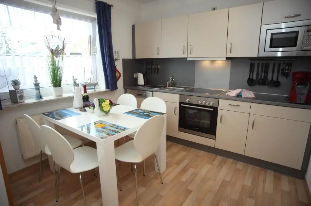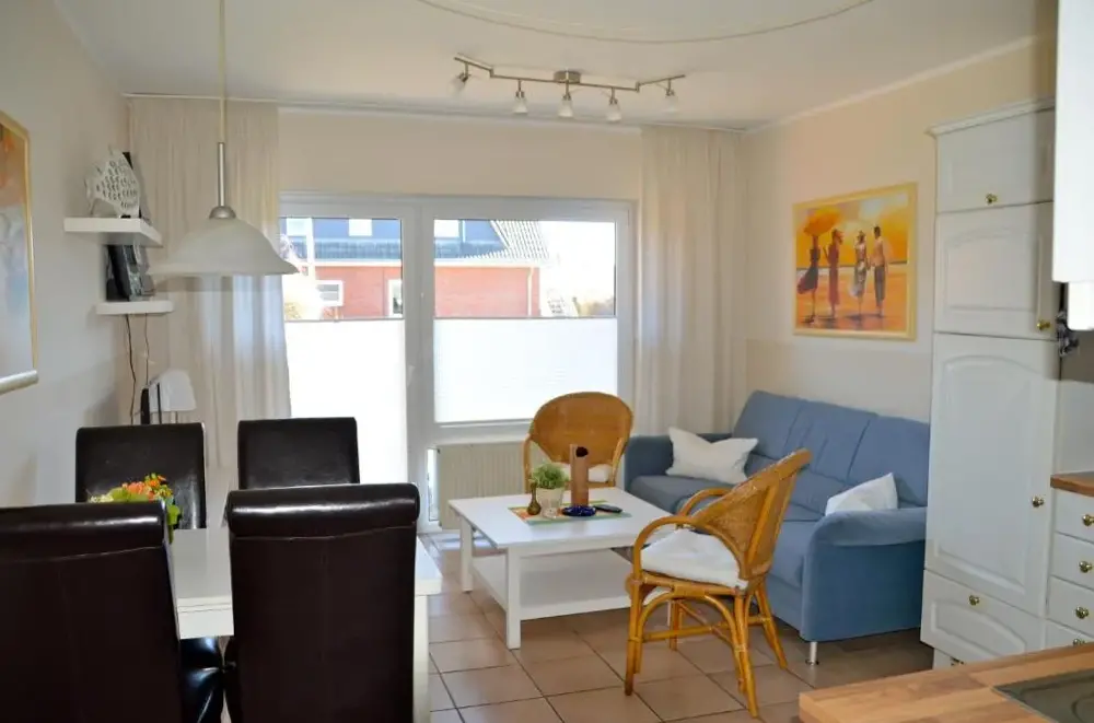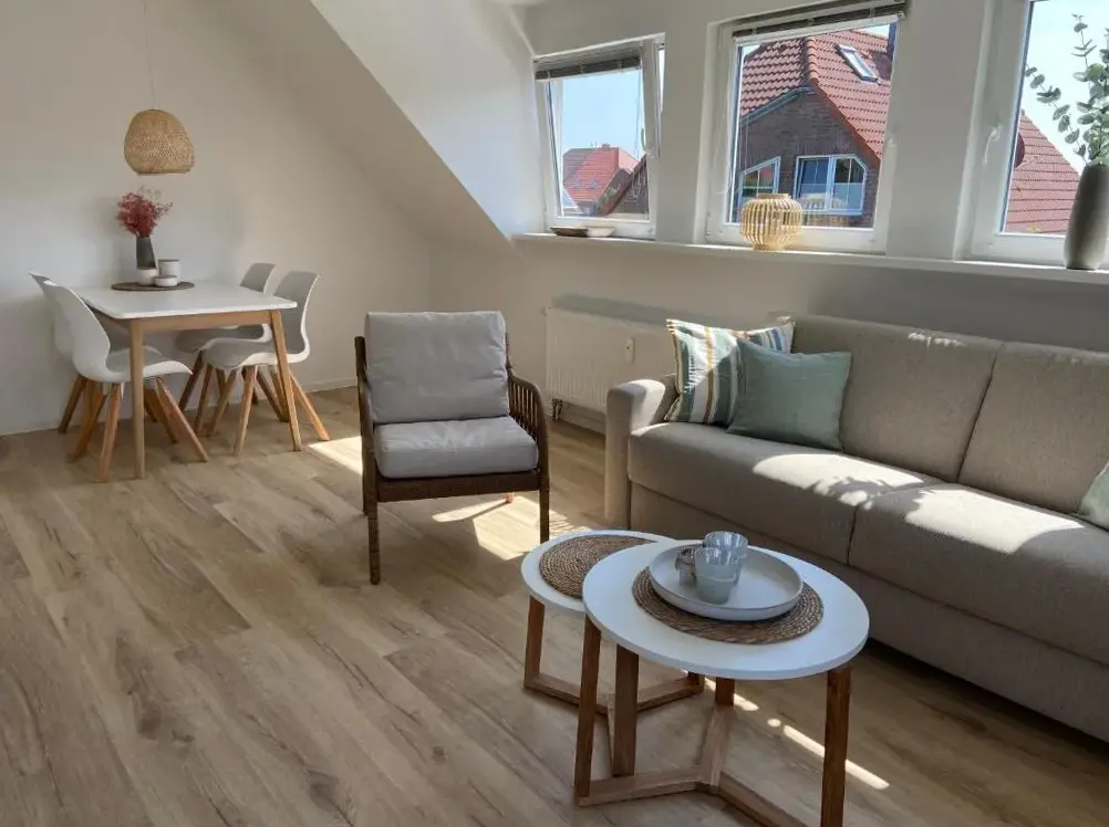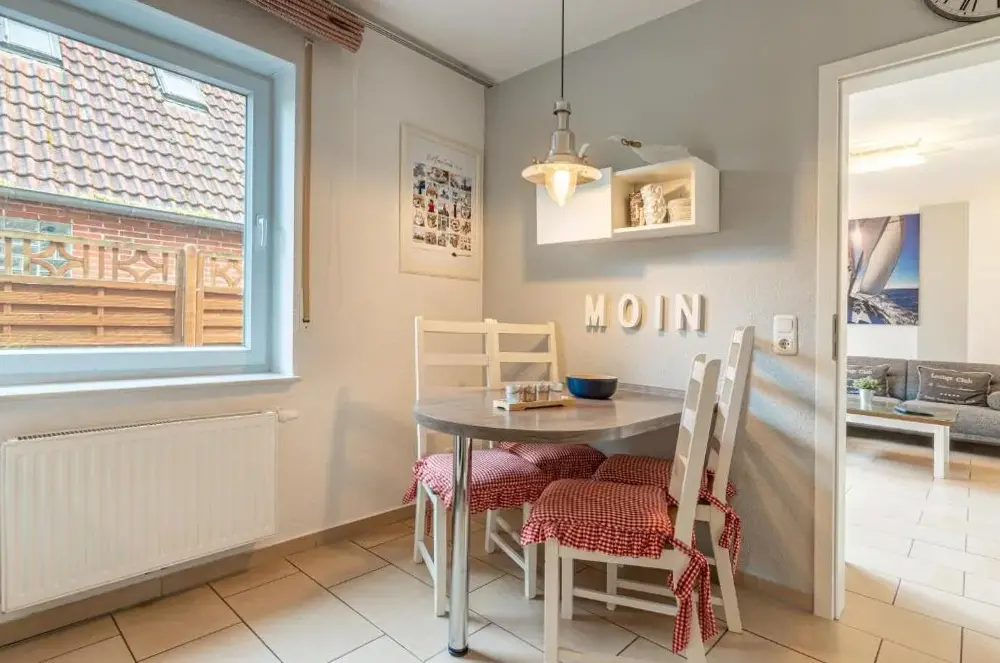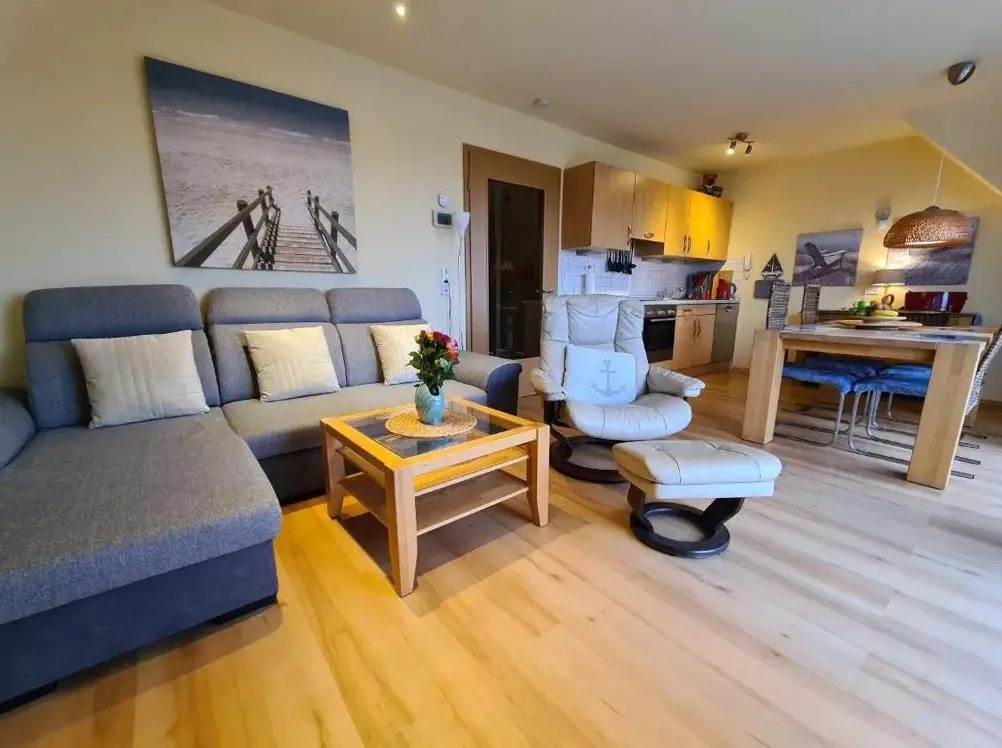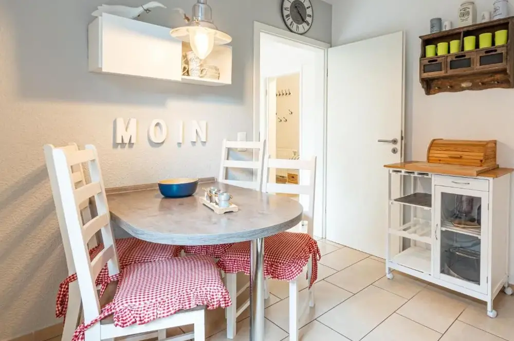 More information about Ferienwohnung NordseemondFewo Strandflieder offers a one-bedroom apartment with a living room in Norden, ideal for guests seeking a prime location near Norddeich Beach. Enjoy a balcony, dining area, sofa bed, and a well-equipped kitchen featuring a coffee machine, refrigerator, microwave, dishwasher, and electric kettle.