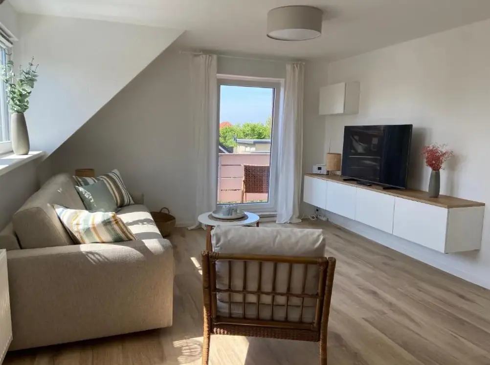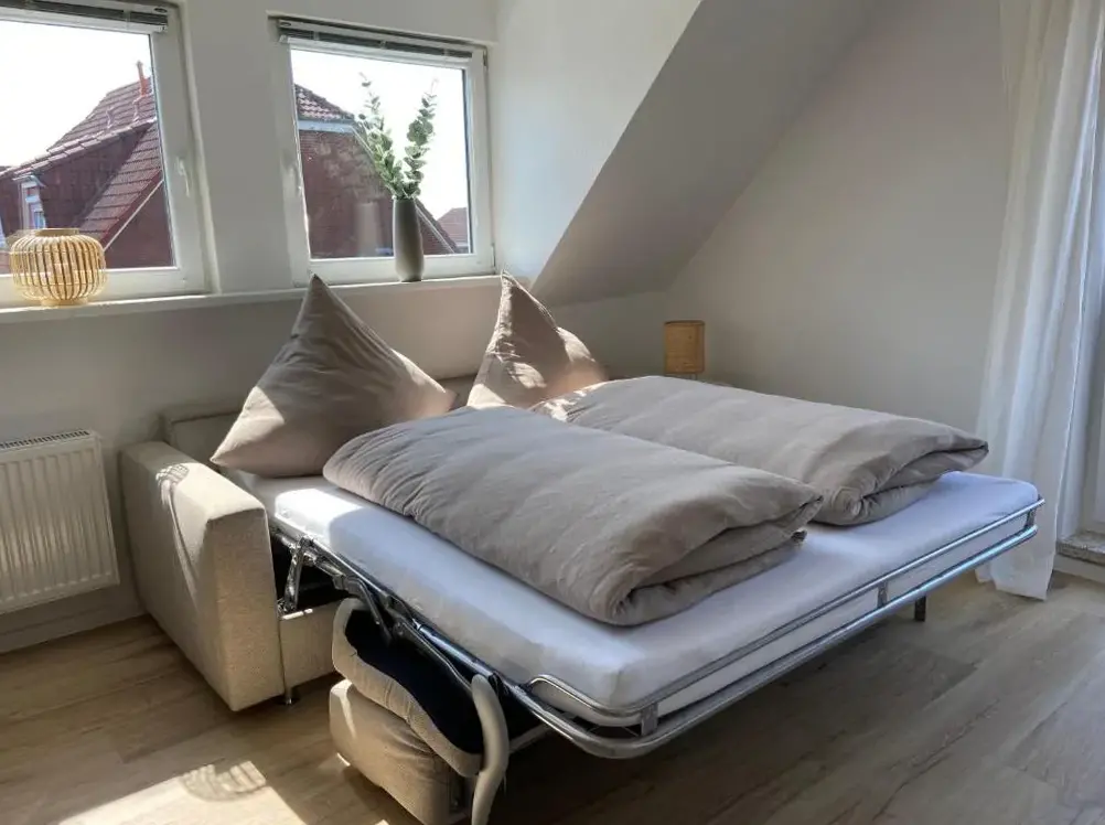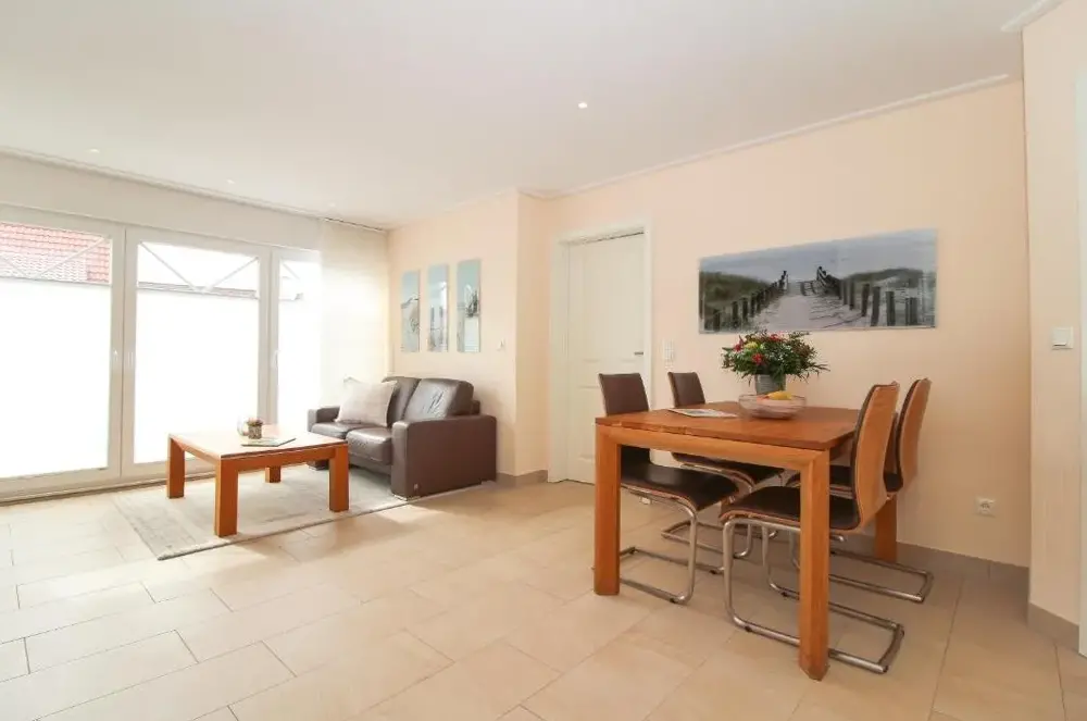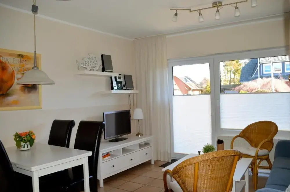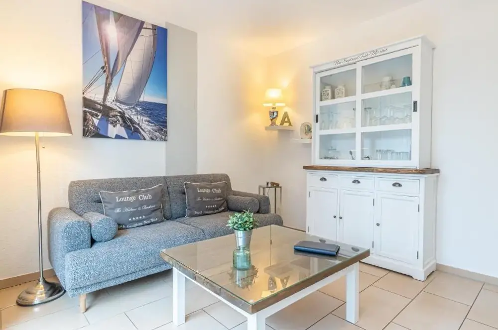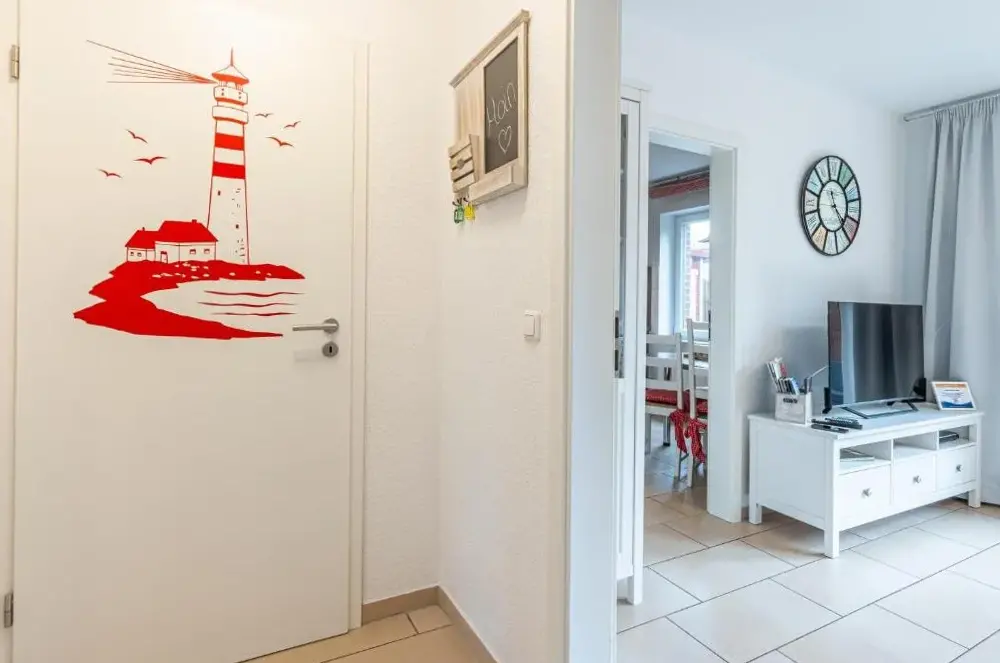 More information about Ferienwohnung NordseemondFewo Strandflieder offers a one-bedroom apartment with a living room in Norden, ideal for guests seeking a prime location near Norddeich Beach. Enjoy a balcony, dining area, sofa bed, and a well-equipped kitchen featuring a coffee machine, refrigerator, microwave, dishwasher, and electric kettle.