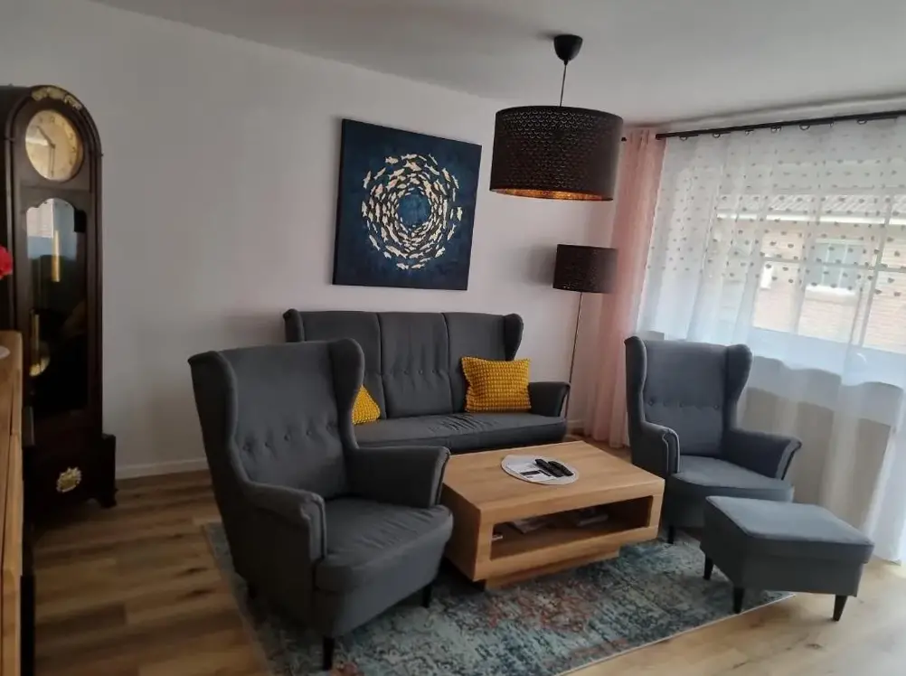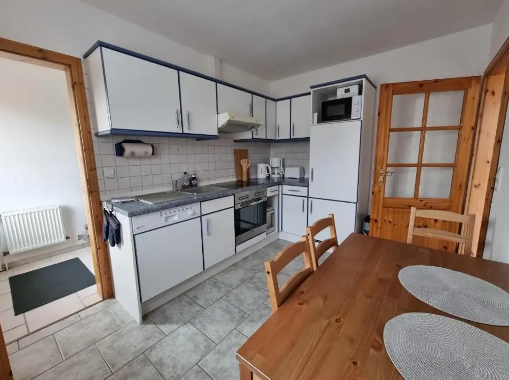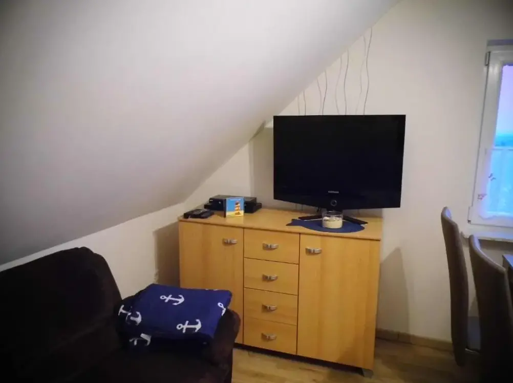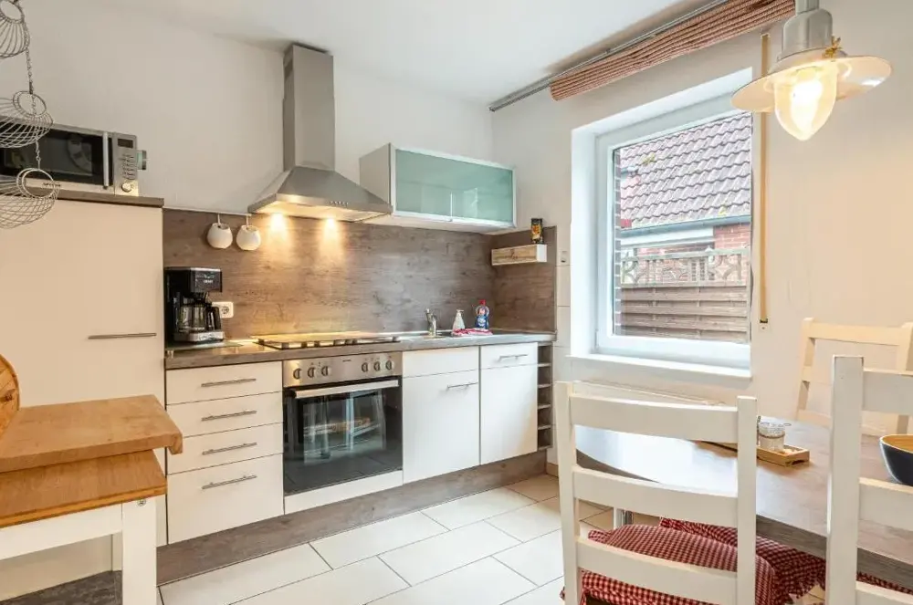 More information about Omas oll HuusKleiner Pirat offers a spacious two-bedroom apartment in Norden with a terrace, free WiFi, and on-site private parking. Guests can enjoy a fully equipped kitchen with a coffee machine, dishwasher, and microwave, along with a washing machine and work desk. Located near Norddeich Train Station (about 2.