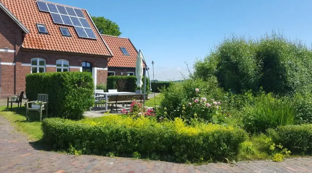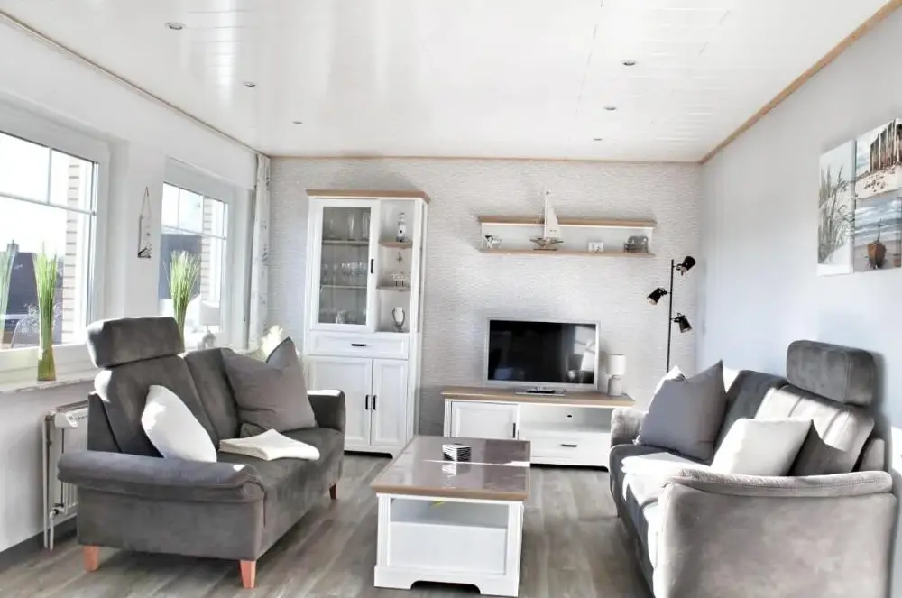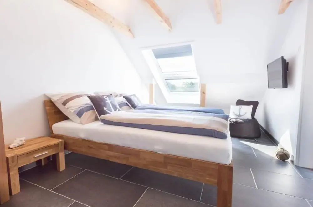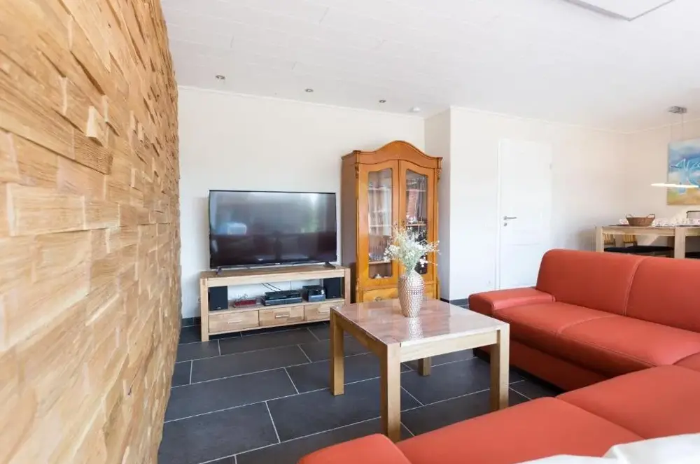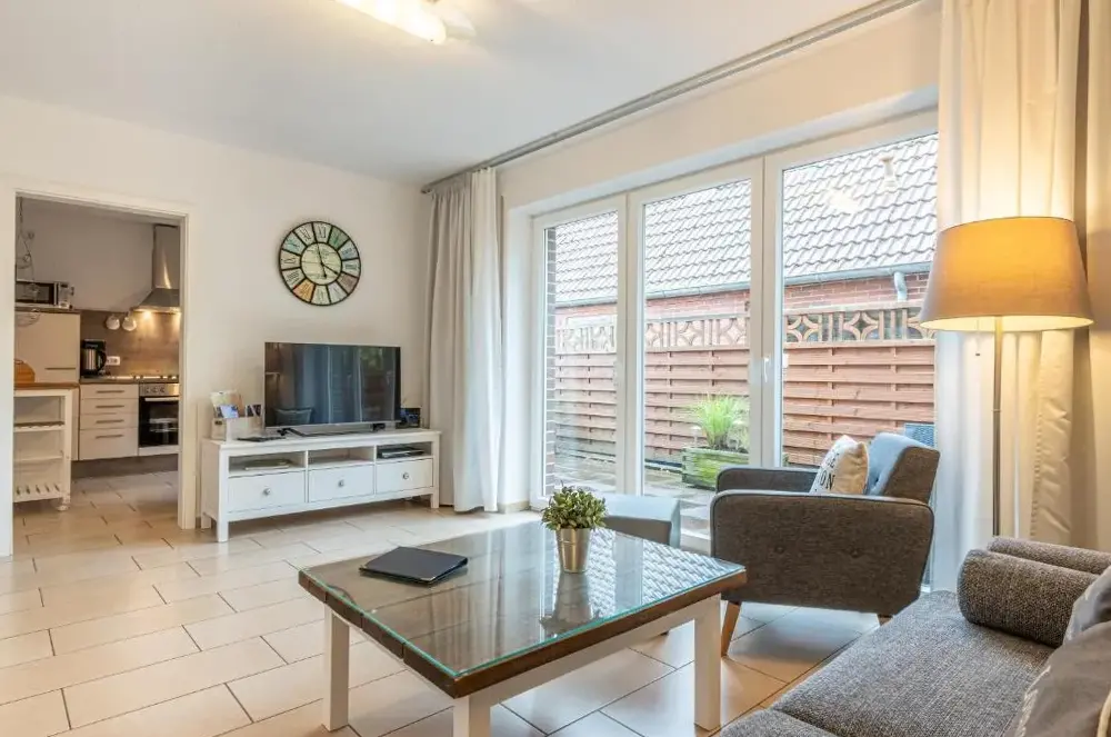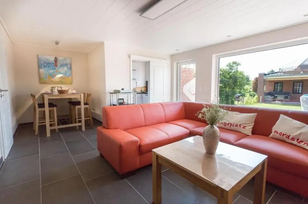 More information about Ferienwohnung Kleekamp NorddeichLuxus 5 Sterne Ferienhaus Pilsum is a two-bedroom holiday home in Norden with a private entrance, tiled floors, a fully equipped kitchen, and a cozy sofa. Guests enjoy a sauna, terrace with outdoor furniture and a barbecue, and a garden for a peaceful retreat. Free WiFi throughout, free on-site private parking, and an electric vehicle charging station enhance convenience.