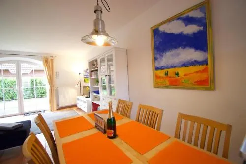 More information about Haus SchönbornKleine Nordseewelle ohne Hund is a beachfront holiday home in Norden with direct access to the Norddeich Beach and a terrace. The property offers a living room with a terrace, kitchenette, private bathroom, coffee machine, outdoor furniture, refrigerator, electric kettle, and TV, plus a children’s playground. Free WiFi and on-site private parking are available, and a restaurant is nearby.