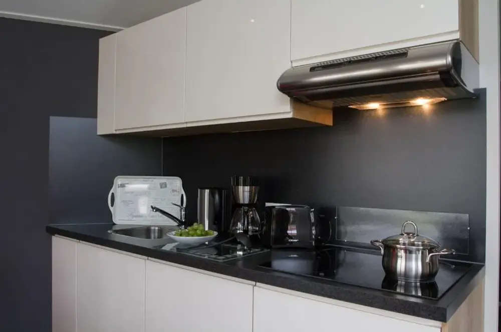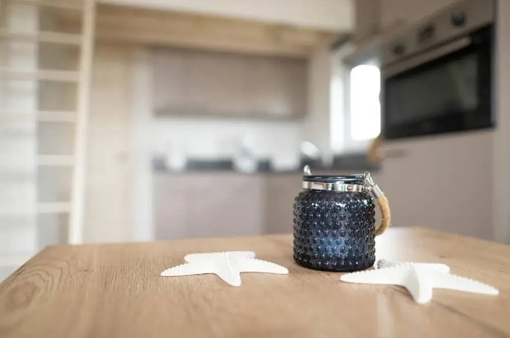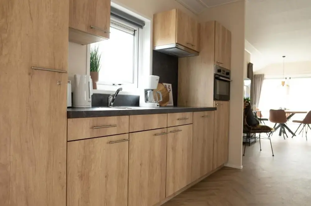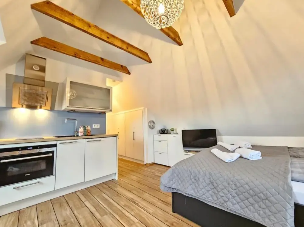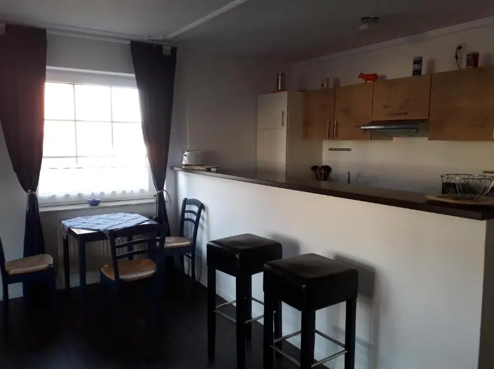 More information about Mienhus Apartments Ferienwohnung MommeChalet bis 4 Personen ohne Hund in Norden offers a cozy holiday home with one bedroom and a spacious living room, a terrace, and a restaurant, plus free WiFi. Guests can enjoy a fully equipped kitchenette with a coffee machine, refrigerator, microwave, dishwasher, oven, stovetop, toaster, and electric kettle.