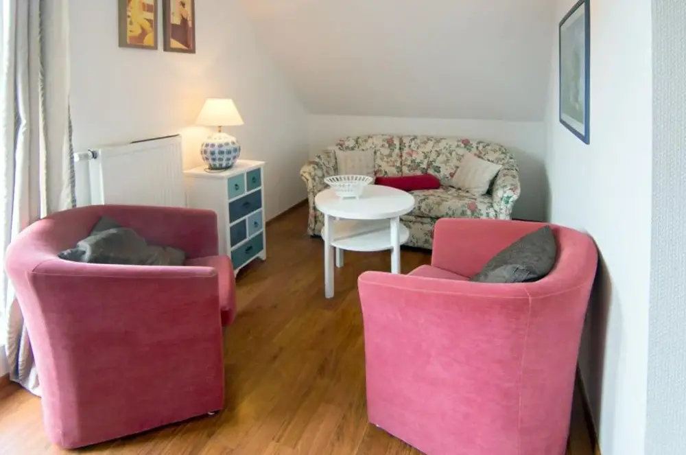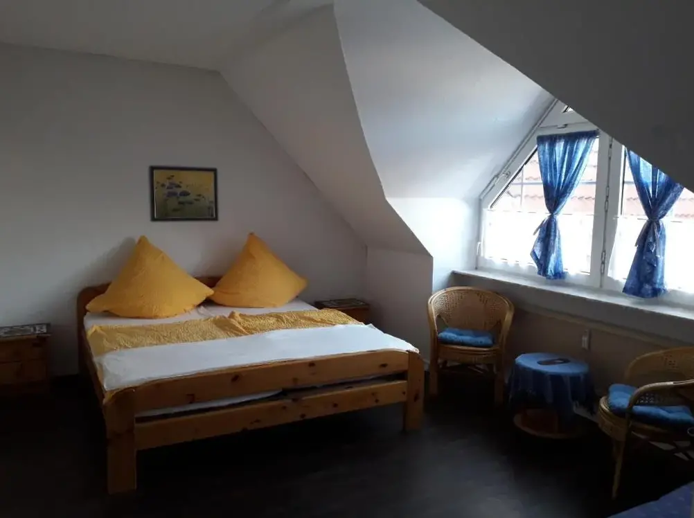 Haus Schönborn in Norden-Norddeich offers comfortable family rooms with private bathrooms, balconies, and garden views, plus a kitchenette, dining area, and parquet floors. Modern facilities include free WiFi, a shared kitchen, outdoor seating, bicycle parking, and free on-site private parking.