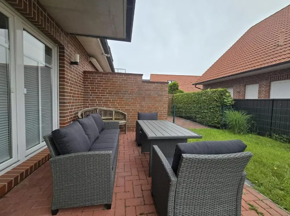 More information about MeeresbriseFerienwohnungen Saida Wohnung 10 offers a spacious apartment in Norden with two bedrooms, a living room, and a balcony. Guests enjoy a fully equipped kitchen, washing machine, and free WiFi, along with a garden and terrace for outdoor relaxation. An outdoor seating area is perfect for outdoor dining.